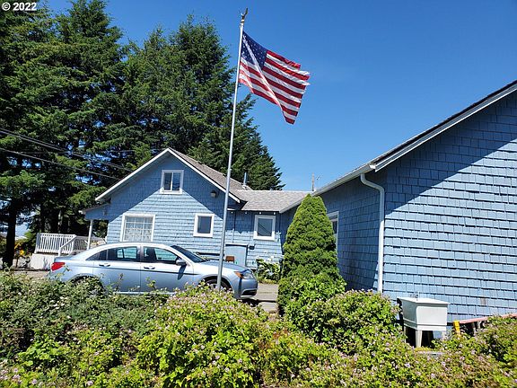 Great investment opportunity! Here is a 2 bedroom plus loft area and 2 bathroom home with galley style kitchen that sits on.32 of an acre with beautiful coastal view, fenced backyard with lots of space for entertaining and a hot tub. Was at one time used as a vacation rental, Appliances are included. Has a finished enclosed sunroom/mancave with wet bar plus a large spacious 2 car garage with work area. Just a short drive to the beach, river and port. Great starter home or investment!