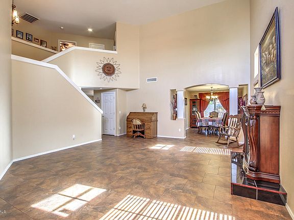 Beautiful open floor plan with very high vaulted ceilings when you walk through the front door. Nice fireplace in the living room. The entire home is 18 x 18 Italian porcelain tile and real wood floors on the stairs and loft upstairs. No carpet home. The kitchen has maple cabinets and stainless steel appliances. Relax in this amazing backyard that has an extended patio cover running the entire back of the home for plenty of shade. The emerald colored pebble tech pool has a water feature and cool decking around the entire perimeter. Less than 3 minutes to the 303 freeway access. This home will not last long, schedule an appointment to see it today before it is sold! *Be sure to watch the 3D Virtual tour in the photos tab!
