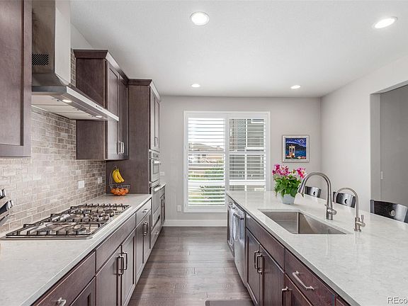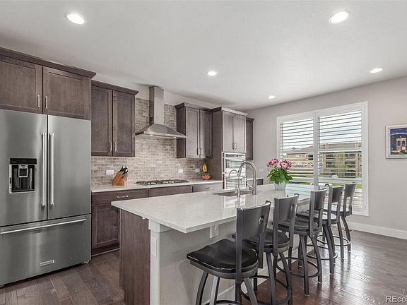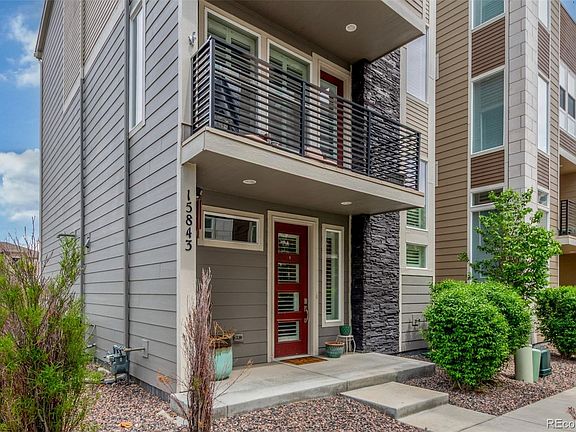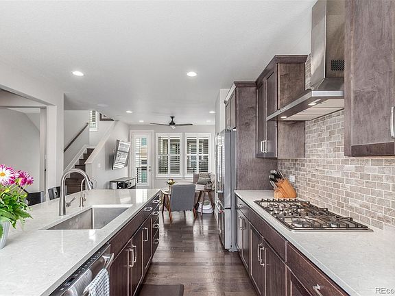 6/14 OPEN HOUSE CXL! Welcome to chic, modern living in the highly sought-after Cityscapes at Southcreek! You’ll fall in love w/ this bougie, three-story home w/ stunning fourth-story rooftop patio w/ panoramic views of the Rockies. With every upgrade imaginable, an end unit w/ tons of natural sunlight and situated on a premium lot, this is the one! Upon entry, you’re greeted by gleaming hardwood floors that flow throughout the home. The first level features a thoughtfully designed, hardwired built-in office, perfect for remote work. Head up to the second floor and discover an airy, open layout. The kitchen is a showstopper, featuring stainless steel appliances, a gas range, slab quartz countertops, oversized eat-in island, coffee bar nook & a walk-in pantry. You'll also find a conveniently located powder room, a custom-built desk area and a cozy living room w/ floating bookshelves. Step outside to an open air patio, ideal for morning coffee or evening unwinding. On the third level, the private living quarters await. The immaculate primary suite boasts abundant custom built-ins for storage, a spa-like en-suite bath w/ raised dual vanities, an oversized Euro-glass shower & a generous walk-in closet. The secondary bedroom includes its own en-suite full bath & the same smart storage solutions. Enjoy the convenience of laundry on the same level & a high-end whole house water softener & reverse osmosis! One final staircase takes you to the top of the world, the rooftop patio, a true Colorado entertainer’s dream! Whether you're hosting friends, enjoying music via the built-in outdoor speakers, or curling up w/ a good book, the sweeping mountain and city views are simply fabulous! Location is everything & this home has it all: steps from the Cherry Creek Trail & just minutes to the Cornerstar Shopping Center, great dining options, Broncos practice facility, DTC & Centennial Airport, plus easy access to Parker Rd, Arapahoe Rd, I-25, E-470 & more. Hurry, this one won't last!