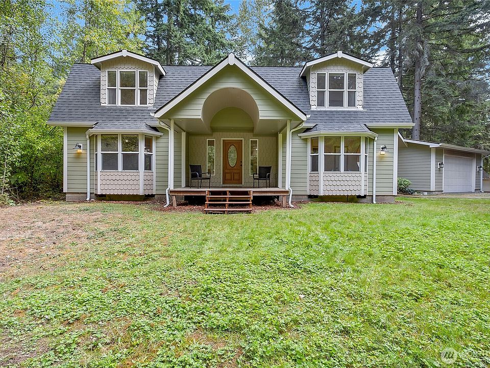 5 acres of peace and privacy with a spacious 3,420 sf home boasting a bedroom and full bath on the main floor and primary bedroom 5 piece bath, loft and 2 more bedrooms with full bath upstairs. Main floor houses open entryway, utility room, open dining area to desk spaces and kitchen with cooking island plus huge living room leading to front and back decks. House has brand new propane run dual zone boiler system providing radiant heat, updated hardi siding, roof and gutters. The property also houses a stick built shed that serves as an office, storage shed, old house (removed w/full price offer leaving an adu homesite connected to power, water & 6 bedroom septic system), seasonal pond, fruit trees, berry bushes & perks only seen in person!
