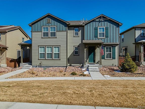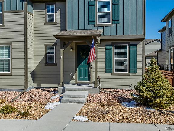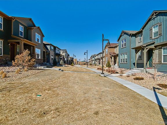 Beautiful open townhome in the charming Trails Edge neighborhood. This is a home that you will not want to miss! Walk through the front door and make yourself at home. The bonus room on right hand side can be utilized as a bright, naturally lit office, or a formal living room/sitting area. The 1/2 bathroom is conveniently located on the main level near the office, perfect for guests. Walk further down the main level to the open kitchen, dining room and great room. The dining room is open with sliding door access to the fenced outdoor living area with deck The kitchen features granite countertops, beautiful upgraded 42 inch white cabinets, custom tile backsplash and stainless steel appliances, including a double oven. Upgraded baseboards and lighting on the top of the cabinetry was also an upgrade. The great room, open to the kitchen, offers the perfect place to host and spend time with family and friends. The main level boasts beautiful hardwood flooring. Upstairs you will find the laundry room conveniently located with storage shelves and plenty of space for additional storage options. Two additional bedrooms as well as the Master Suite can be found on the second level. The shared full bathroom was upgraded with dual sinks. Last but not least, check out the master bedroom, the large suite includes plenty of space for a seating area. The master bathroom features tile flooring, dual sinks and walk in shower as well as a large walk in closet. The full unfinished basement is perfect for a future recreation room, bedroom and bath. Out back you will love the expanded deck and planter boxes. Easily access E-470 and Parker Rd. Located near parks and trails. This home also features several smart home features such as a ring doorbell, lighting that can be controlled from your app and smart thermostats. You will love to call this charming home yours.