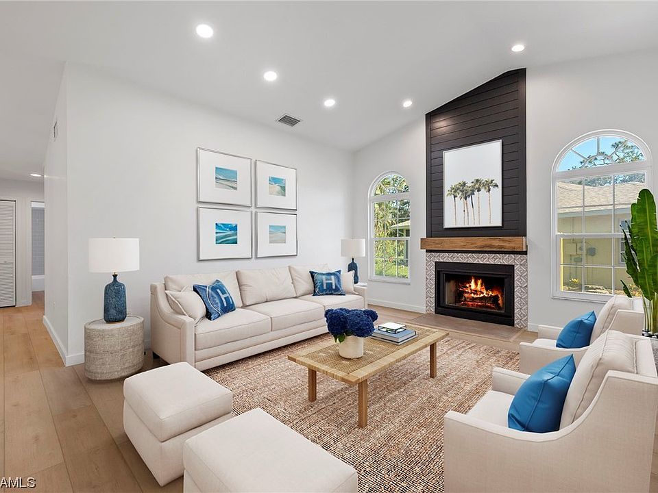 A refined and highly curated oasis, this expansive, exquisitely appointed ranch-style residence is a prime example of the best in custom interior design. The home is situated on a quiet cul-de-sac in Fort Myers and anchored by its highly coveted community, McGregor Woods. This professionally equipped kitchen is the heart of the home and connects all dining and living spaces while overlooking the outdoor sanctuary. A massive island with custom cabinetry invites collaboration and entertainment to accommodate today's modern lifestyle. A robust restoration results in a brand-new roof, freshly painted interior and exterior, custom built-in cabinetry, walk in closets, working fireplace and beautiful luxury vinyl plank flooring throughout. This home is further defined by high-end finishes that include marble flooring in bathrooms, designer lighting, plantation shutters, stainless steel appliances, and new landscaping with irrigation system. Community Pool and Tennis Courts. Being 10 minutes away from Sanibel Causeway, this is a premier location.