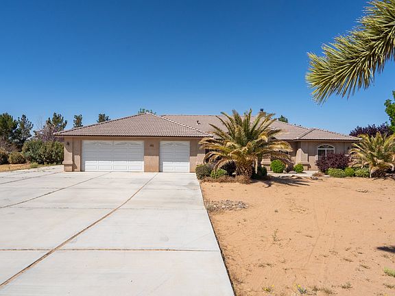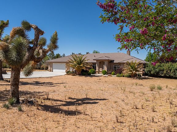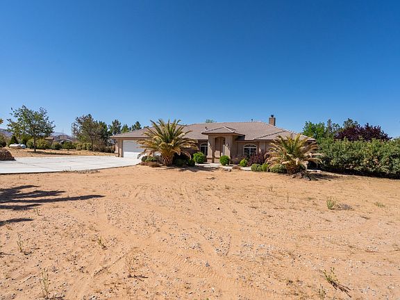 Stunning & private gated paradise in the Apple Valley Desert! Beautiful curb appeal, this is the only home in the area with lots of trees surrounding the property plus an irrigation system to water all trees/plants. What a huge lot! -with endless possibilities, the property has a section of the backyard fenced off with vinyl fencing for one very private yard to enjoy. Inside, the open floorplan is spacious & bright with tile floors, recessed lighting & lots of natural light. 9-ft ceilings accentuate the living room featuring a wood burning fireplace complete with a ventilator switch to warm the whole house. Beautifully done Chef's kitchen has glossy granite countertops, lots of cabinetry, stainless-steel appliances including a built-in gas stove, dishwasher, microwave & built-in Professional Series Frigidaire oven. New laminate flooring is in each spacious bedroom & installed in the family room. The freshly painted primary bedroom enjoys an en-suite bath with dual sinks, a jetted/hot tub & a large, tiled shower stall. Just off the attached 3-car garage is a convenient individual laundry room with storage. Outside, the backyard's covered patio has recessed lights to perfectly illuminate the entertaining space, perfect for enjoying summer nights. Additional features include a soft water filter system throughout, RV Parking with dump, a detached separate storage room, 2 AC Units, ADT alarm system, Arlo Security Cameras, as well as updated electrical of 300-325 amp with solar.