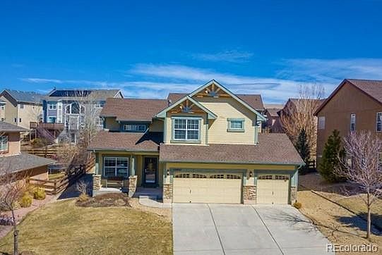 Immaculate Goetzmann 2-story w/beautiful views of Pikes Peak! Bright & sunny main level w/soaring ceilings is the perfect venue for entertaining! Kitchen includes all appliances (gas range top), center island & gleaming hardwoods! Adjoining dining space walks out to the back patio! Watch the game in the family room...cozy gas FP too! Main level powder room plus laundry! Upper level bedrooms plus a loft/flex space for a home gym, office or studio! Spacious master w/French doors, en suite 5-piece bath & huge walk-in closet! Neutral colors & decorator niches throughout! Unfinished basement offers ample storage or finish it to suit your wants and needs! Includes a rough-in for a future bathroom. Oversized, attached 3-car garage! Fully landscaped lot and fenced back yard! Well-equipped parks right down the street and walking trails throughout this desirable (& still reasonably affordable) neighborhood! Easy access to I-25, schools & shopping! Award-winning Lewis-Palmer School District! Come check out this stunning move-in ready home today!