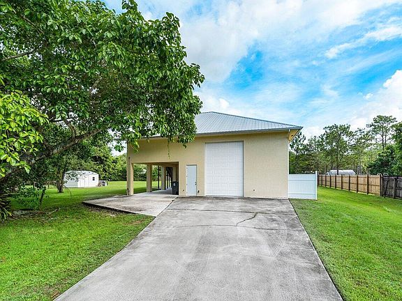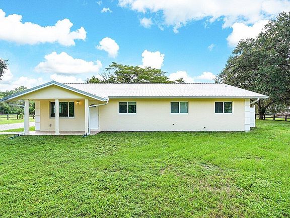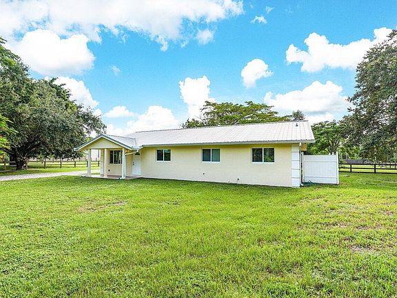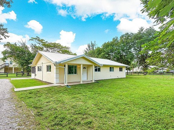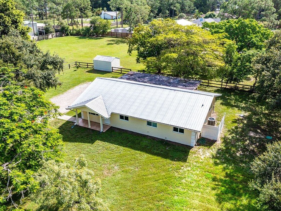 One of a kind property located in Jupiter Farms. Main house has 3 bedrooms 2 bathrooms over 1700 sq ft updated to current building and hurricane codes. Newer metal roof and a great layout. Second building constructed in 2015 has a 544 sq ft 1 bedroom apartment with 1242 (air conditioned) sq ft garage with roll up door and epoxy floor, and 192 sq ft of additional storage all with secondary entrance.Building also has generator for garage and apt on 150 gallon propane tank, and is already setup to easily add additional 3 garage spaces or horse stalls if desired. The main house is light and bright with tile floors throughout, updated kitchen and bathrooms, and a large living area.Nice sized main bedroom with ensuite main bathroom, and cabana door. Main home also has large utility/laundry room with additional storage, and large covered and screened patio.The home has impact windows, wired alarm and the entire 2.5 acre lot is fenced! The possibilities for this property are endless. There are multiple ways to capture income from this property by renting out the apartment, the garage, the whole property, or any other mix that may work for a persons needs. This is the perfect property to offset the cost of a mortgage by using the second building as an income source. The metal roof was installed 2015, A/C 2015, demand water heater 2015, septic system 2017, well pump 2020.