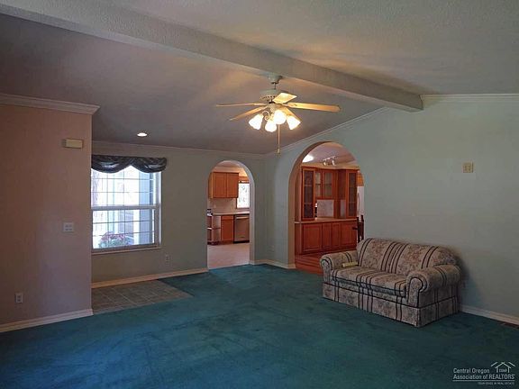 Spectacular move-in ready Goldenwest Country Estate triple-wide manufactured home. Open living, vaulted ceilings, hardwood and carpet flooring, certified wood stove, kitchen updated with stainless steel appliances and tile backsplash. Spacious master suite with big walk-in closet. 36x20 RV garage, 24x24 2-car garage, 16x20 wood shed, and 14x14 storage shed. Fully fenced with mature landscaping, sprinkler system, extensive wood decking, new septic tank and paved driveway. Home warranty included.