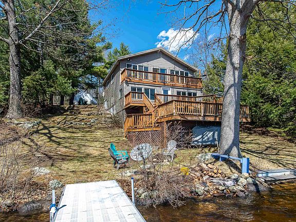 Wow! Enjoy year round waterfront living on popular Northwood Lake. Fabulous views from all levels in this south facing home with 102' of lakefront. So many spots to enjoy the water from multiple decks, sitting areas & dock, you will never want to leave. When you walk in the front door you will be surprised by the expansive open concept kitchen & living area with sliders to the first deck. Great kitchen w/ss appliances & breakfast bar, open dining area and living room with brick hearth & gas fireplace for those cozy nights and views views views. Full bath and bedroom complete the first floor. The LL features charming LR w/woodstove insert & builtins, expansive master w/custom features, additional room for walk in closet or rec space and sunfilled office that inspires creativity and lovely sitting/entertaining area that adjoins multiple decks for entertaining or just peaceful enjoyment & views of the sunset. You can swim from this spot or just launch your boat or kayak all from your own backyard. Easy access to all major routes all year long and ample parking for boat & vehicles. The detached oversized garage is currently a workshop but can house vehicles as well. Tucked into the lot & deceptive from the front, this multilevel home was built to take advantage of the views, southern exposure and full use of the waterfront life. Don't miss this opportunity. Showings begin by appointment 4/22.