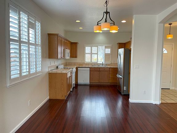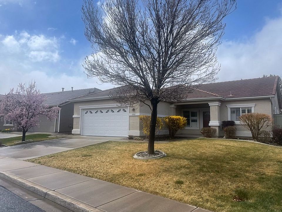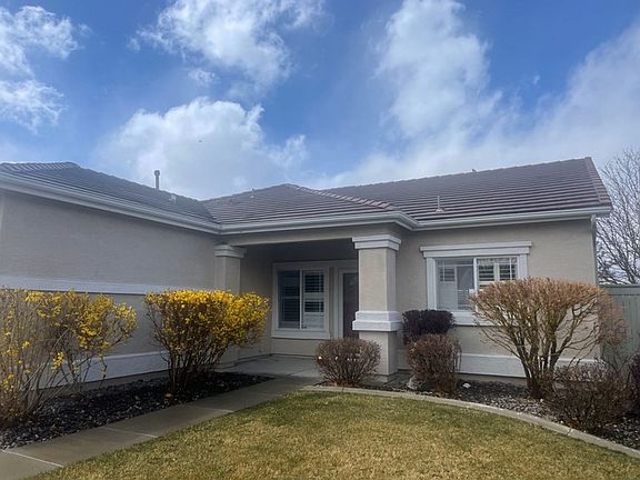 Three bedroom South Meadows home with mountain views. Plank flooring in the living room and kitchen. Living room with gas fireplace, entertainment alcove, lots of windows for natural light and slider access to the landscaped back yard with paver patio areas and retractable awning. Kitchen with tile countertops including fridge, new gas stove, dishwasher and microwave. Primary bedroom with walk in closet and attached bath with garden tub/ shower combo and dual sinks. Laundry room with washer & dryer. **Yard service included for front yard only. Close to restaurants, shopping, entertainment, and medical facilities. Easy freeway access. Tenants responsible for all utilities: gas, electric, waster, sewer and trash. No pets or co-signers accepted. Renters liability insurance required for all financially responsible tenants All properties require an application process. Each person over the age of 18 must complete an application. The application fee is $35 per person. Applications include running credit (650 or better), employment/income verification, and rental references. NV. BS.0143495, NV. PM.0164783