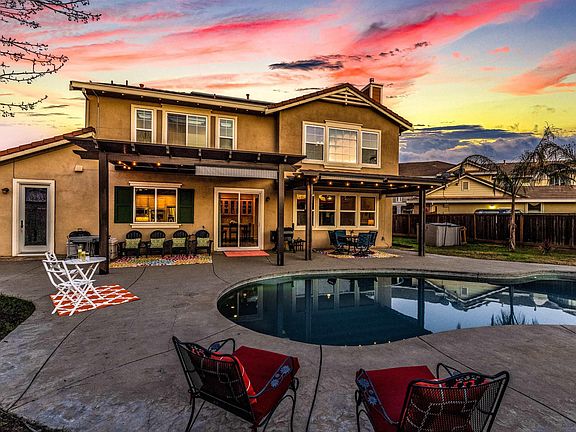 Great opportunity!!! Gorgeous estate home has it all boasting custom pool, desirable floor plan, and side yard expanded access on an extra large lot for hosting multiple vehciles/RVs/boats/etc! East facing front door and welcoming front porch invites all family and friends the minute you step on the property. Well-designed floor plan for large family living with a full bedroom plus ensuite and full bathroom downstairs! Also, has dedicated half bath in main area downstairs as well. Perfectly designed for extended family/guests with lots of options for creating your own oasis. Gracious entry boasts soaring ceilings and elegance throughout. Light, bright space everywhere including open main family room and kitchen area. The expert chef in you will relish the grand epicurean kitchen with stainless appliances, stunning granite, multiple cabinets including coffee/bar area, and island. Designer selected upgrades throughout including plantation shutters, rich engineered hardwood floors downstairs, patterned tile flooring/counters, and plush neutral carpet elsewhere. Side yard reveals a custom security iron gate, extended driveway next to three car garage, and yard with space for an ADU (check city). Owned solar! Great commute location, not far from Streets of Brentwood, the new Costco.