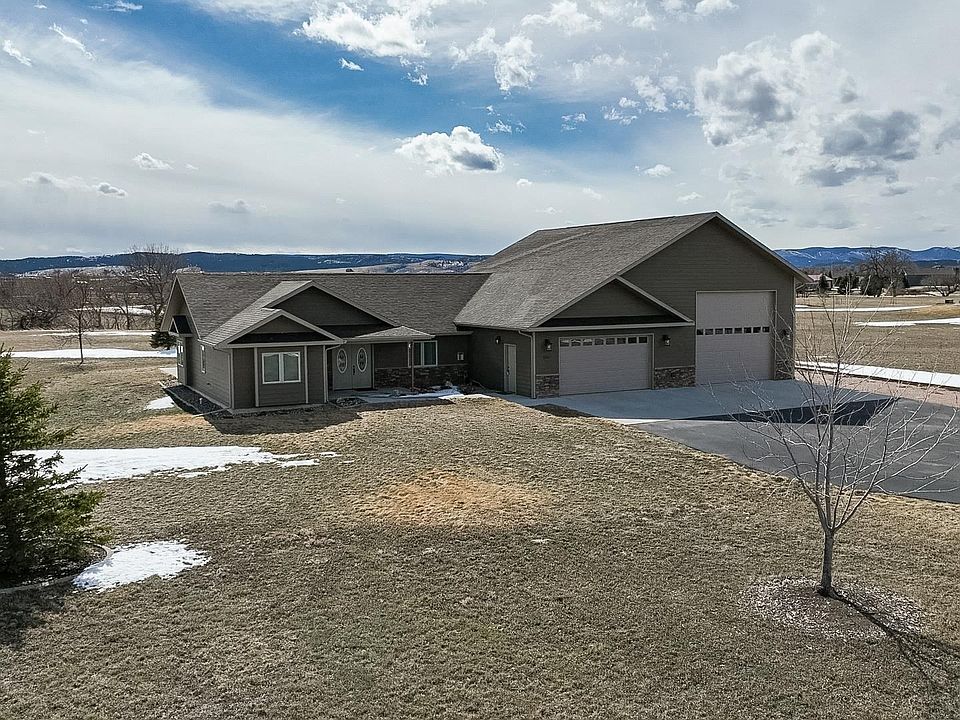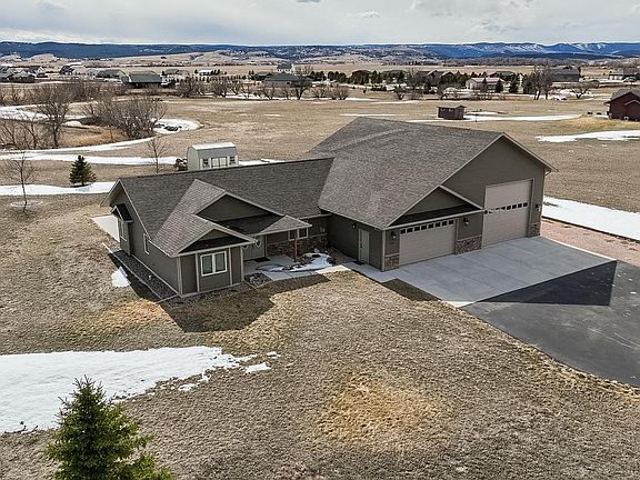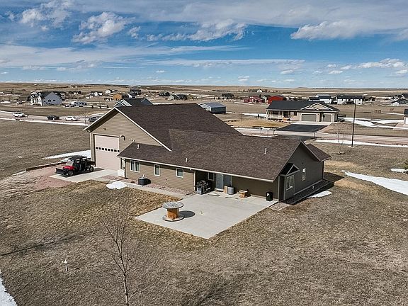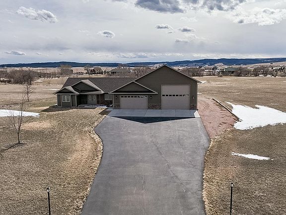 Listed with Jill VantHul Black Hills Realty 605-593-3242. Welcome to your new home with Elk Creek flowing through the back of your 3+ acre lot. Bring all of your outdoor toys and store them in the huge, finished, heated garage with bonus entertaining space for your next party or to watch the big sporting event! The house boasts front and back covered concrete patios with gas plumbed grill and flat top. The main living area is very open and perfect for your next gathering. Ample cabinet space, natural stone countertops, and stainless appliances in the kitchen with reverse osmosis water system. Lush primary bedroom suite with double sinks and tiled walk-in shower. Two more bedrooms with charming window seats. Handy laundry room with utility sink. Abundant closet storage. Motorcycle friendly paved roads. Call to view!