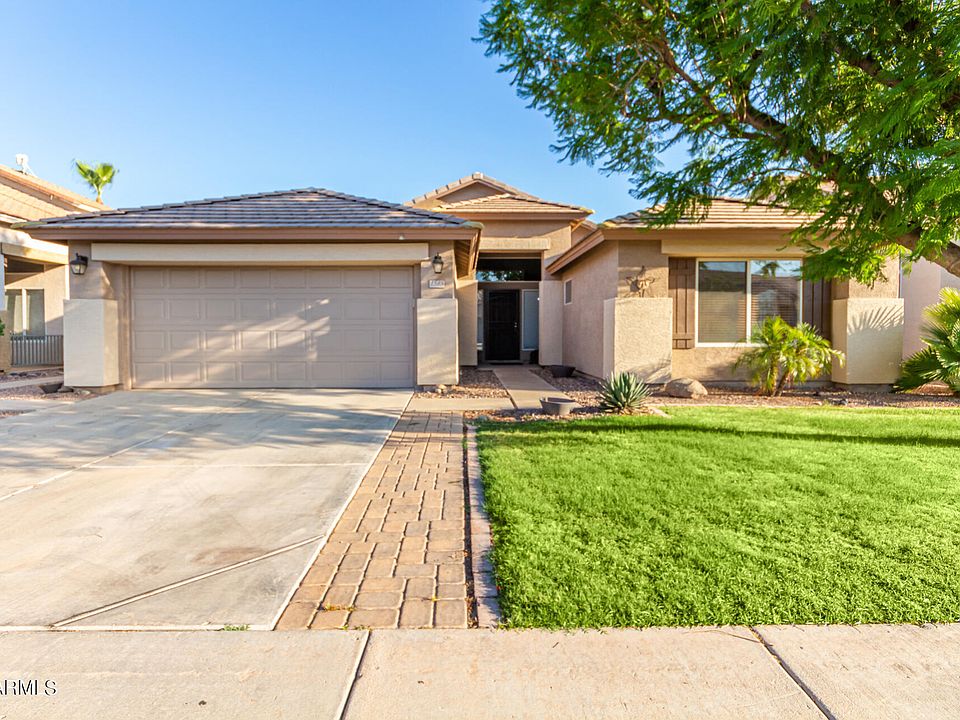 You must see this Ashley Park gem! The lush grass in the front yard stays cool under the mature shade tree. The generous, split floor plan opens up to a beautiful patio and sparkling pool with a small lawn and tasteful AZ landscaping. The north and south transom windows invite lots of natural light into the living space. This home has the features! See it before the competition takes it away!