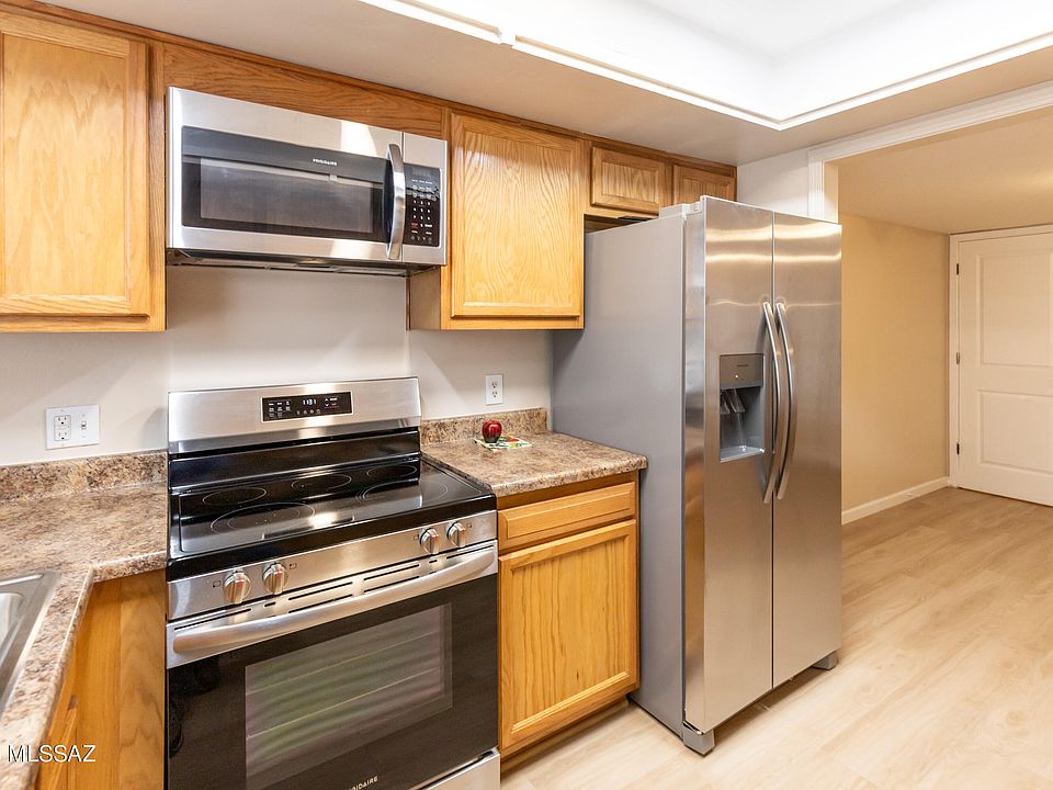 Move-In Ready Gem! Perfect location between Campbell and Mountain (Bike Path to U of A)! End unit townhome, Fresh Paint and New Vinyl Plank flooring throughout home, New Stainless Steel Appliances, Updated Bathrooms (2 Full bathrooms & 1 powder room), new window coverings throughout, new hot water heater, new entry doors, carport & entry path freshly painted with epoxy floor coating. Fully fenced backyard patio. Two exterior storage closets. Mountain views from main bedroom...complete with ensuite bathroom! Enjoy the community pool, basketball/pickleball court and children's playground!