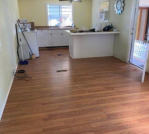 This 2BD/1BA 624 sq.ft is a DIAMOND IN THE ROUGH!! The front entrance brings you into a spacious Florida room that can be used as a workshop or additional storage. There's an open floorplan between the kitchen and living room. The 2 bedrooms and bathroom are located towards the back of the home. Enchanted Lakes is a quiet, fenced in 55+ retirement community with a hometown appeal. Located in Malabar Florida, you'll find yourself near white sandy beached and just a short 15 minute drive to the city of Melbourne which has its own international airport. Enjoy resort amenities at Enchanted Lakes including a heated swimming pool, firepit with BBQ area, bocce ball, pickleball court, on-site library and laundry facility to name a few. All listing information is deemed reliable but not guaranteed and should be independently verified through personal inspection by appropriate professionals. Our company does not and cannot guarantee or warrant the accuracy of this information or condition of this property. Measurements are approximate. The buyer assumes full responsibility for obtaining all current rates of lot rent, fees, and pass-on costs. Additionally, the buyer is responsible for obtaining all rules, regulations, pet policies, etc., associated with the community, park, or home from the community/park manager. Our company is not responsible for quoting said fees or policies. All listing information is deemed reliable but not guaranteed and should be independently verified through personal inspection by appropriate professionals. Our company does not and cannot guarantee or warrant the accuracy of this information or condition of this property. Measurements are approximate. The buyer assumes full responsibility for obtaining all current rates of lot rent, fees, and pass-on costs. Additionally, the buyer is responsible for obtaining all rules, regulations, pet policies, etc., associated with the community, park, or home from the community/park manager. Our company is not responsible for quoting said fees or policies.