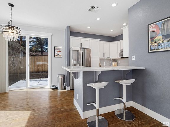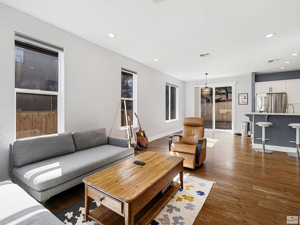 PRICED TO SELL! This almost brand-new construction offers everything you could want - a prime location, top-rated school zones, and walkability to the Truckee River, multiple parks (including Idlewild with Food Truck Fridays), downtown Reno, Mayberry Landing shopping center, scenic trails, and more. Step inside to discover a bright and welcoming open great room that seamlessly flows into a high-end kitchen featuring marble countertops, stainless steel appliances, a glass tile backsplash, and contemporary cabinetry., Hardwood floors throughout add warmth and sophistication. The first floor also includes a convenient half bath for guests and a spacious 2-car garage, complete with an electric vehicle charger and extra parking. Plus, there's tons of exterior parking, with enough space to fit 2 RVs and other toys - ideal for all your outdoor adventures! The long, gated driveway adds an extra layer of security and privacy to your home. Upstairs, enjoy a large den, laundry room with ample storage, and a luxurious master suite with double sinks, a separate shower and bathtub, and a generous walk-in closet. Two additional bedrooms and a full bathroom complete the second floor. Outside, the backyard is ready for your personal touch - create your own private oasis with minimal maintenance, featuring xeriscaping, turf, and both sunny and shaded areas. The front yard also offers plenty of potential. This home is packed with thoughtful features, including a built-in radon mitigation system, a large shed for additional storage, under-stair storage, and garage shelving. It's a true turn-key home, located just around the corner from Idlewild Park and minutes from Downtown/Midtown Reno.