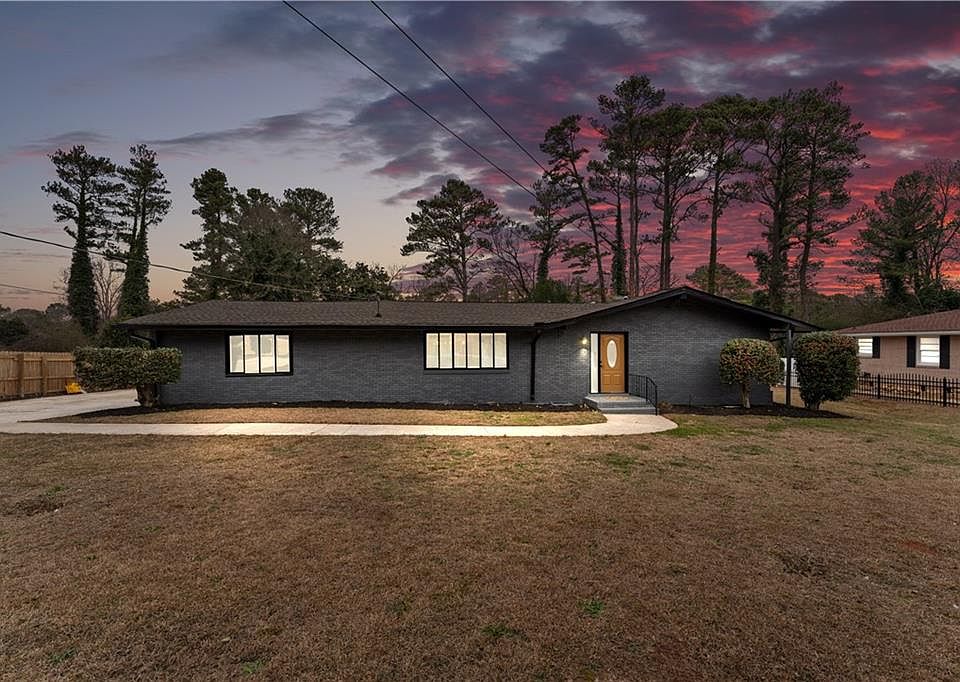 Nestled in a serene neighborhood, this Spectacular, completely RENOVATED home with dramatic beamed ceilings combines sophisticated, stylish design with practicality, offering an ideal setting for entertaining and everyday living. This Ranch style house features an open floorplan, with an upgraded modern kitchen, three spacious bedrooms, two full bathrooms and two car garage. Meal preparation is a breeze in the kitchen, boasting a *Large Island, stylish white cabinetry, elegant fixtures, **quartz countertop, **pot filler faucet* and stainless steel appliances. The owner's suite offers a chic and luxurious private bathroom with a tiled shower and Brand new double sink vanity, quartz countertop and a rainfall showerhead for a spa experience, plus a spacious walk-in closet, while the two additional well size bedrooms share access to the brand new hall bathroom, ensuring comfort and convenience for all occupants. This home captures something special about the feeling of a Fully Renovated , clean, and spacious home with all new upgrades Fresh paint in and out, New LVP floors, Light fixtures, Ceiling fans,New doors throughout, New water heater, New Gutters, *New furnace, ducts, New dual garage door and motor, and more. Stepping outside, you'll discover a large fully fenced backyard, ideal for pets, play, or gardening. Conveniently located within 8 minutes of Atlanta Hartsfield Airport and 20 min from Downtown Atlanta, few minutes from schools , shopping centers and local parks this home offers a perfect blend of comfort and convenience. This one won’t last long! Stop by to see this beauty with NO HOA, and don’t miss the opportunity to make it yours!.