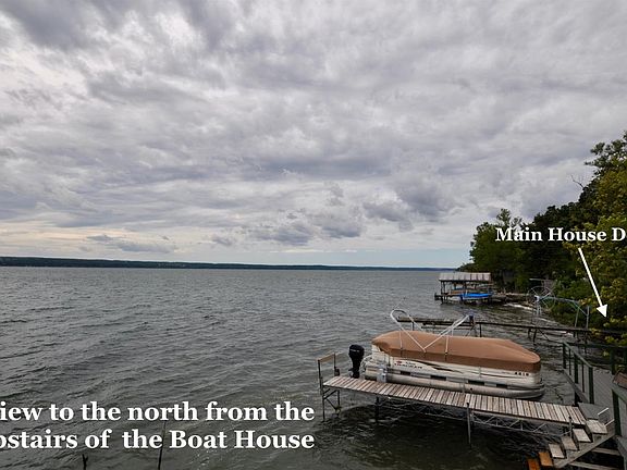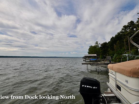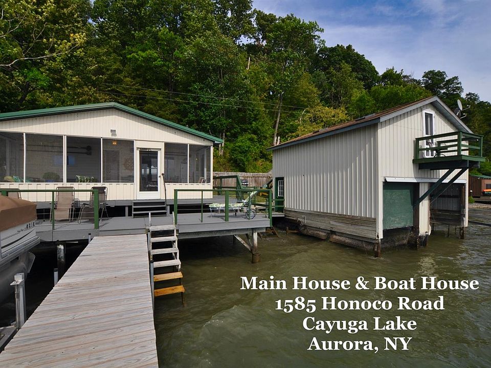 East side of Cayuga Lake with 96 feet of deep water lake frontage with seawall. EZ access to lake and is perfect for swimming. The 2 bed cottage and dual hoist boat house with bonus room above. The property is fenced for privacy. Lawn, BBQ area, and decks provide exterior entertaining spaces. The screen porch with full lake exposures open to decks and kitchen. Plenty of parking on the road and a storage shed for all the lake toys. Enclosed double boat house is a one of a kind lake front amenity. Located near Long Point State Park boat launch and a plethora of wineries and eateries on the east side. By Boat you can explore 40 miles of Cayuga lake as well as the lock system as Cayuga lake is a navigable water way connected to the NYS lock system. 2019/2020 taxes Cnty $1872 Sch $2438