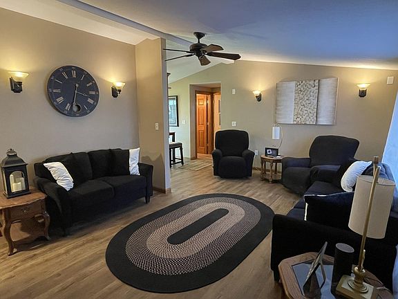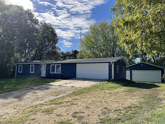 Move in ready- Edge of town location- Extra garage- checks all the boxes! Beautifully remodeled 3 bedroom, 1.5 bath ranch style home located in Woodland Shores subdivision. Tip-top shape, tastefully decorated with new flooring and paint throughout. Beautiful cabinets, six panel doors, and wood trim. Appliances- stove, refrigerator, disposal, new microwave- included. Main floor laundry. Full basement ready to finish- walls done, only needs flooring and ceiling. Attached 2 car garage. PLUS a car detached garage/workshop, 24x28, insulated, heated, and wall a/c. Security cameras included. Dusk to dawn lights on front and back. New deck/steps off back door. Furnace (2013). Central Air (2019). Roof (2019). Siding (2020). Water heater (2008). Like to fish or boat?...river access with a fee to the HOA. The perfect place in a country subdivision!