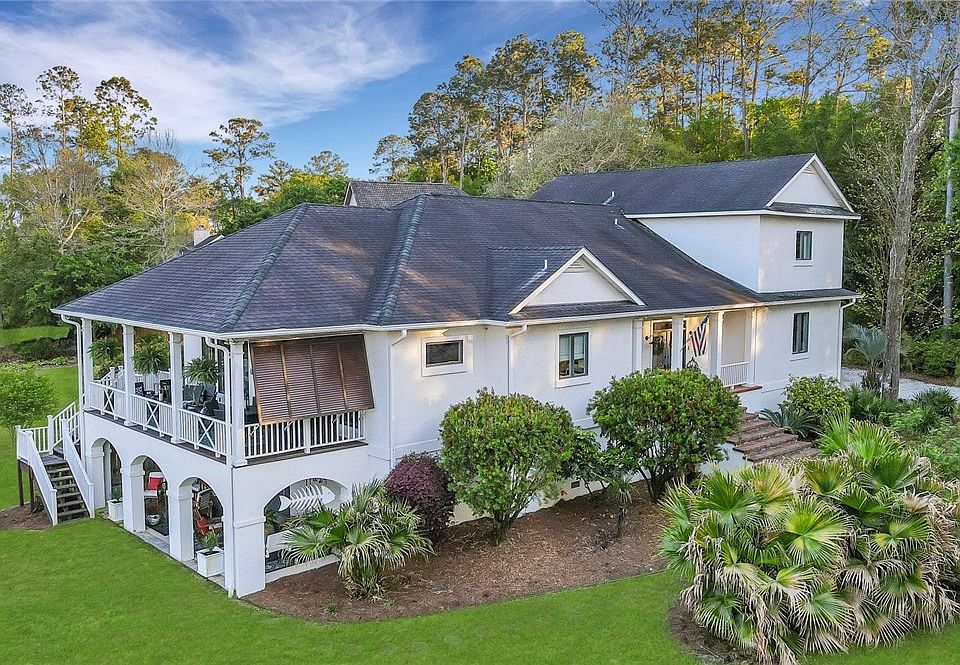 On the Julienton River surrounded by unobstructed natural preserve, this low country home offers tranquil waterfront living with a semi-private dock. Striking views are found in nearly every room of the home. The open concept kitchen and great room is well designed with ease of entertaining in mind. It includes a 6 burner gas cooktop, double ovens, trash compactor, and wine fridge in the expansive island. The main living area features a gas fireplace and light providing floor to ceiling doors that lead to a porch made for gathering regardless of the season. Three bedrooms include a generous primary suite with a luxurious bathroom located on the main level, with two bedrooms upstairs, along with two additional rooms perfect for a home office, nursery, or flex space. This homes offers plenty of storage under the main level for all of your outdoor tools, kayaks, and more. The over half an acre property features a fire pit in the backyard, only a few short steps to the private dock. At the end of the dock is a covered dock house with electricity, water, and boat lift, - perfect for launching a new adventure and make this property the ultimate escape.