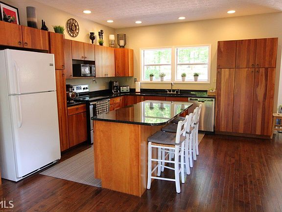 Over $80K in renovations since 2014. New ext paint. Fresh int paint. This uniquely beautiful home sits on 5.2 partially wooded ac. w/ pasture & a pond w/ catfish, bass & crappie. 2-story GR has floor to ceiling windows that extend across the rear of the home, including the MBR, looking out to pond & woods. Hand-laid stone FP w/ 2-story, towering, exposed chimney. Glass french doors in MBR open on to huge deck. Updated MBA has clawfoot tub, separate custom tile walk-in shower & dual vanity. Kraft Maid cabinets & granite countertops w/ an island in KIT, w/ access to new deck & above-ground pool. Main floor has refin. hdwd floors. Upstairs: new laminate flooring, loft sitting area overlook GR, 3 BR, & BA w/ triple vanity. 2-car GAR w/ wrk space & bonus room!