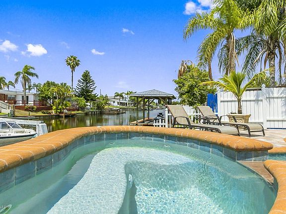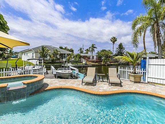 This canal home has the WOW factor! From your first steps inside you will fall in love with the voluminous ceiling at the entry, the retro style, and elegant feel of the home. Entertaining will be a breeze with this functional floor plan, 3 bedrooms + office, and 3 full baths. Kitchen features stainless appliance, breakfast bar open to family room with wood-burning fireplace. Large screened porch leads out to resort style pool and spa with paver deck all recently added in 2014. Enjoy the best of what canal living has to offer, fishing, boating, and manatee watching will be just a few of the things on the family's to-do list. Home also features a metal roof, laminate wood flooring and is situated on a large corner lot. What more can you ask for? Hurry and make your appt to see this one! Contact listing agent at for your private tour.
