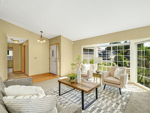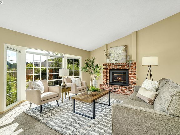 Wonderful one-level with private back yard, on a cul-de-sac lot. Spacious vaulted living room/dining room with great natural light. Gas fireplace in living room creates a cozy atmosphere for evening entertaining. Vaulted family room/kitchen overlooking your peaceful back yard, perfect for everyday living. Kitchen with eating bar to socialize while preparing dinner. Quiet, primary suite with walk-in shower, dual vanity, and jetted tub to soak your cares away. Covered back patio and mature trees and shrubs in your fenced backyard. Sunny front yard with roses, waiting for you to plant tomatoes next summer. Terrific location, 3 blocks to Autumn Ridge Park and easy access to shopping, schools, Nike, and Intel.