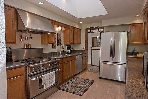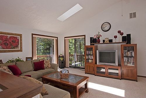 Hidden in the trees & the peacefulness of Vineyard Mountain you will find this one of a kind private retreat just waiting for you to call it home. 3 large bedrooms, 3 large baths, gourmet kitchen with professional gas range, cherry cabinetry, corian countertops. All this & a wonderful natural setting with wrap around decking, abundant sky lights & storage. Lower level bedroom could be a second master bedroom with modification. You will love the feel & spaciousness of this home!