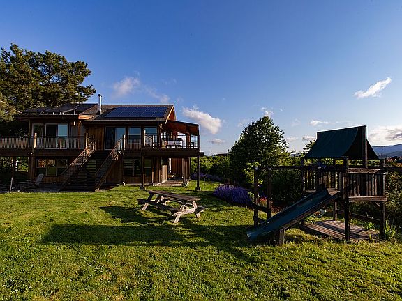 Custom home designed and built with the Gorge family in mind. Reverse living floor plan takes advantage of some of the best views in the Gorge. Enjoy huge Mt Adams, Mt Hood, and unobstructed East Hills views from the kitchen, living, dining, master bedroom and timber framed second story deck. Super energy efficient home, EPS score 37, in-floor hydronic heat, triple pane windows, spray foam insulation throughout, passive heating/cooling, Lifebreath heat recovery ventilation system, 4.9KW PV solar. Large detached barn with garage doors to hold all your toys and projects. Chicken coop and run, fruit trees, raised garden beds, grapes, blueberries, and mature landscaping. Country living just minutes from Hood River. May Street/Hood River Middle school attendance area.