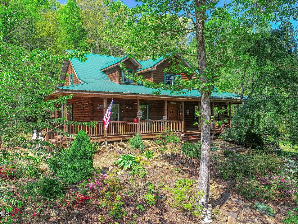 Custom Built Log Home nestled in the mountains of East Tennessee on 45.15 surveyed acres. Built by one of the areas best builders. WOOD WOOD and more WOOD Wood doors, wood floors, wood walls, wood ceilings and wood stairway. This 3 bedroom, 25 bath home is currently being used as a 4 bedroom home. The primary is on the main level with a walk-in closet, walk-in tile shower and whirlpool tub. As you enter the front door, you enter the foyer and see the floor to ceiling stone wood burning majestic fireplace.Vaulted ceilings and open concept. Open kitchen with built-in bar on the living room side, granite counter tops and lots of cabinets, formal dining room, half bath and laundry room complete the main level. Upstairs are three more rooms that are being used as bedrooms, a full bath and a great open space that is being used as a double office. The home has a full size drive under basement that could be converted into living space. There is a wrap around porch, a deck, flower garden, wood shed and potting shed.Landscaped with love. There is a detached garage/man cave that has an attached carport. Did I mention the pond and seasonal waterfall? FIBER OPTIC internet and NO RESTRICTIONS Don't miss this opportunity to own 45.15 acres of Tennessee with a log home which is a rare find! Here is your chance to own a piece of Clinch Mountain.Information deemed reliable but not guaranteed. Buyer/buyer's agent to verify all information