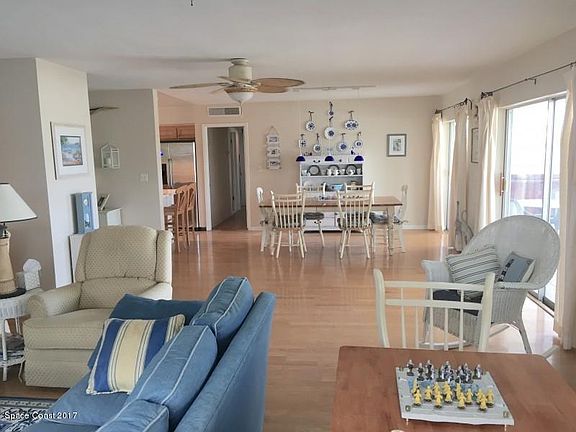 PRICE REDUCED! Amazing opportunity to own this beautifully renovated 3 bedroom, 2 bath home located on a DEEP water canal with DIRECT access to the Banana River (NO BRIDGES). This home has a brand NEW roof, NEW A/C, NEW electrical panel, and a NEW pump on the sprinkler system which is on a deep well. Relax in the oversized screened patio which features a vaulted ceiling, tile flooring and a jetted hot tub. The spacious ''open concept'' living area boasts wood flooring, a large living room, alarge dining room and an updated kitchen with quartz stone counter top, tile backsplash and stainless steel appliances. Master bathroom was just completely updated. Moor your boat at your private dock which has water and electrical hook-ups and get ready for some world class fishing just minutes away in the Banana River. This property is ideally located for maximum protection during a storm. This property has an oversized 2-car garage with plenty of storage, and is convenient to shopping
