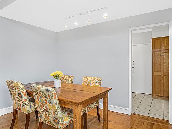 Spectacular opportunity to live just blocks from everything "downtown". This 6th floor sun filled co-op offers two generous bedrooms and one bath,great closets, a large living room with adjacent dining room, and a huge eat in wood cabinet kitchen with granite counters- all in sparkling move in condition. Gleaming hardwood flooring in all rooms other than the tiled kitchen and bath. Newer windows and blinds and recent painting throughout. A heated garage space and same floor storage locker are included in the price and the wonderfully managed building has a very pleasant main floor laundry room overlooking the newly renovated and landscaped patio. The building has a live in engineer, new roofs, recent tuck pointing, and updated electric service. This is one of the most affordable living options in a location which allows you to walk to the trains, shops, restaurants, library, theater, and more. Gorgeous Alexander Park is right across the street. This is a coop and no rentals or pets are allowed. Financing is possible with a minimum 20% down payment (listing agent can refer lender options). ***** Monthly assessment of $755.86 includes owners HEAT, WATER, ELECTRIC, GARAGE, and RE TAXES as well as building management and maintenance, snow removal, landscaping, common insurance, and more. Owners only pay for their cable or internet. HURRY!!