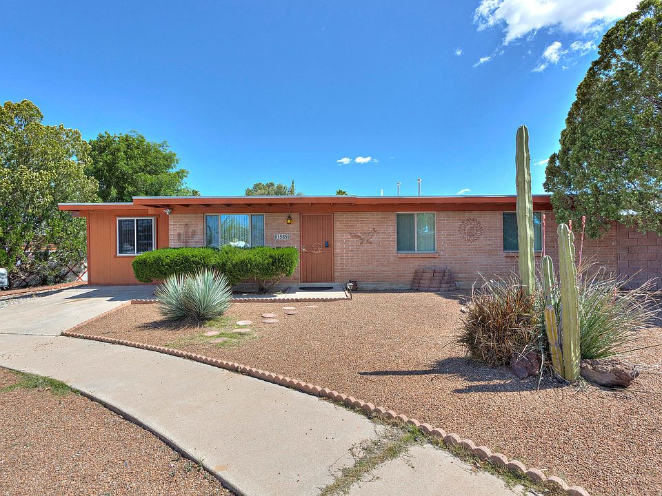Beautifully 4BD/2BA ranch home with pool, on Tucson's east side. Roof and AC only 3yrs old, double pane windows, security screens, 6ft wall. Updated kitchen with plenty of cabinet space and skylight. Great room plus family room with cozy corner fireplace. 3 backyard areas, enjoy your private oasis with sparkling pool as well as extra parking/gardening space. 2 storage sheds. Great location, convenient to schools, shopping, transportation & Davis Monthan AFB. Don't miss out, this one will go fast!
