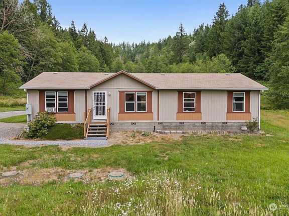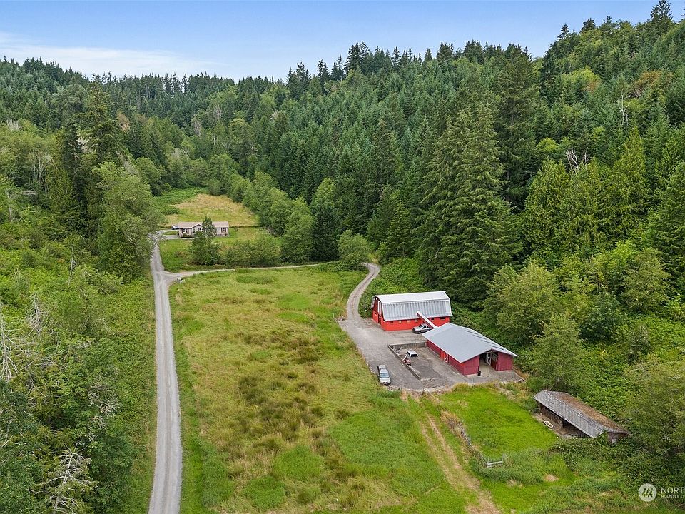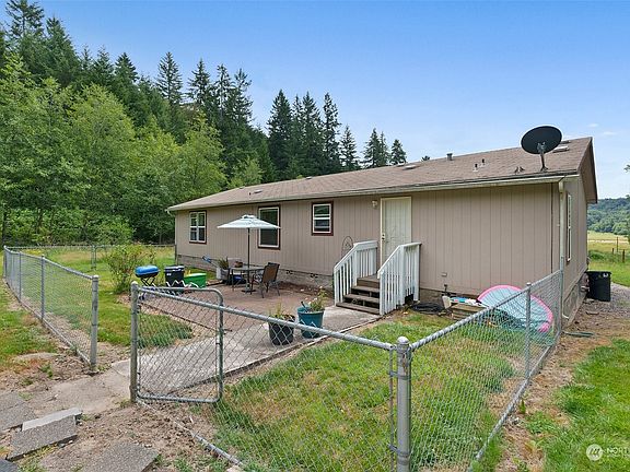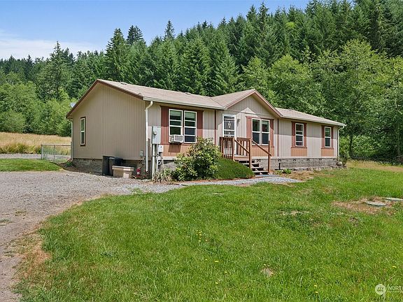 Located just minutes from Downtown Centralia, this 1512 sq. ft. home sits elevated on its 23.32 acres of forested and pastureland. Enjoy the seclusion and quiet. This home features 3 bedrooms, 2 full bathrooms and all the kitchen appliances stay with the sale. Eating area right off kitchen. Efficient forced air keeps you comfortable all year round. This home has a large Primary Bedroom with a 5-piece bath and walk-in closet. There is a separate living room and family room as well. The property has a large barn and machine shed for livestock and projects. Come take a look!