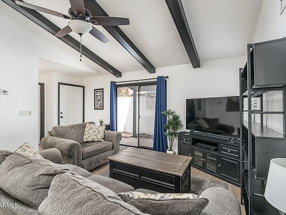 DISCOVER THE ESSENCE OF MODERN LIVING IN THIS RENOVATED 2 BR 1.75 BA HOME WITH 1 CAR GARAGE. UNVEIL A PERFECT BLEND OF STYLE & FUNCTIONALITY WITH THE ATTACHED 1 CAR GARAGE & ADDITIONAL SLAB SPACES FOR 4 VEHICLES. LOW PROFILE RVS CAN BE PARKED ON THE BACK YARD SLAB AS LONG AS NOTHING IS VISIBLE FROM THE STREET. STEP INSIDE & BE GREETED BY THE VAULTED CEILINGS WITH CUSTOM BEAMS, CREATING AN AIRY LIVING SPACE & FIND PRIVACY IN THE SPLIT PRIMARY SUITES. BACKYARD FEATURES ARTICIFICAL TURF WITH DESERT LANDSCAPING. ***** SELLER WORKS FROM HOME ON TUESDAYS, WEDNESDAYS AND THURSDAYS, PLEASE SEE REMARKS FOR RESTRICTIONS ***** ALL INFORMATION CONTAINED HEREIN DEEMED RELIABLE, BUYER TO VERIFY ALL INFORMATION *****