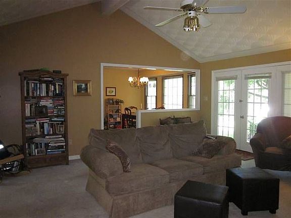 Large Great room with vaulted ceiling, park-like backyard, very well decorated, bay window in breakfast area.