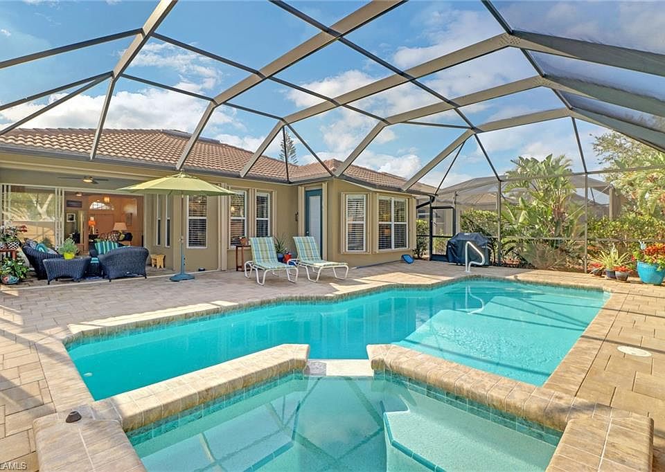 TAKE A LOOK THIS IS LOWEST PRICED POOL HOME IN COLONIAL SHORES BY FAR. Welcome to paradise! Already upon entering this meticulously crafted home, you will be captivated by the exquisite attention to detail, from high ceilings to elegant floors, providing an unparalleled Florida luxury living experience. The spacious open floor plan is perfect for gatherings - it features an expansive living room and dining area flowing into the open and well-appointed kitchen. The split-bedroom layout showcases neutral tile, refined crown molding, and soaring ceilings. Embrace the Southwest Florida lifestyle with your recently upgraded pool, spa, and patio area, perfect for enjoying the Florida lifestyle! Colonial Shores offers outstanding amenities, including a community pool, fitness center, and picturesque sidewalks. Nestled within a gated enclave, this prime location is just minutes from Sanibel and Fort Myers Beaches, ideal as a full-time or seasonal residence. Enjoy LOW HOA fees which are covering your landscaping, lawn care, cable, internet, gated access, and community amenities. Are you the right buyer?