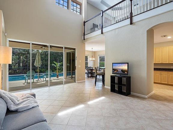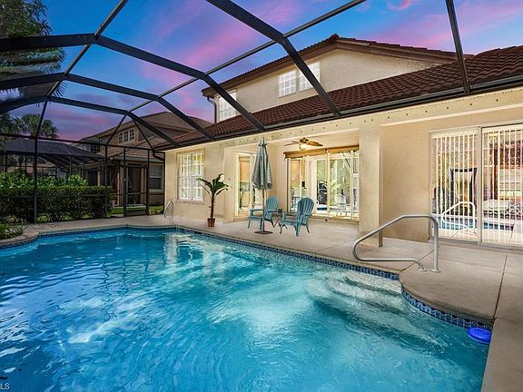 H.16243- LOWEST PRICE/ SQ. FT. pool home in highly desired North Naples gated community DELASOL, WEST of 75! This rare Verde model offers 2 stories, 3 bedrooms +open den/loft area, 2.5 bathrooms, screened pool/lanai, 2 car garage and approx. 2255 sq. feet under air. Built by Centex, the main living areas feature soaring ceilings, tile flooring w/beautiful "wood" vinyl in all bedrooms and loft area. NO CARPET! Kitchen boasts granite countertops and stainless steel appliances. The private pool/lanai area offers a perfect respite for your family to enjoy. New AC in Dec. 2018. Master Bedroom is located on the first floor w/the Loft and 2 additional guest rooms on the 2nd floor. Delasol is a popular low density private gated community w/ sidewalks on both sides of the street, only 271 homes on 147 acres, 62 of which are set aside for preserves, lakes & green spaces. Renovated clubhouse, heated community pool/spa, lighted tennis courts, pickleball, fitness center, basketball and children's play areas. Livingston corridor, close to great "A" rated schools, parks, shops & restaurants. Just 3 miles to world-class Naples beaches, near shops, restaurants, and new Seed to Table Market.