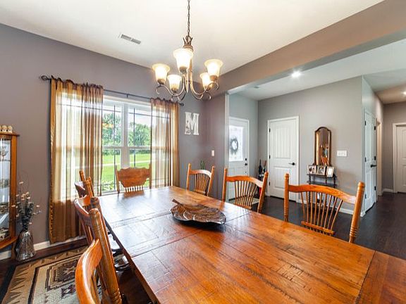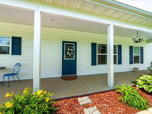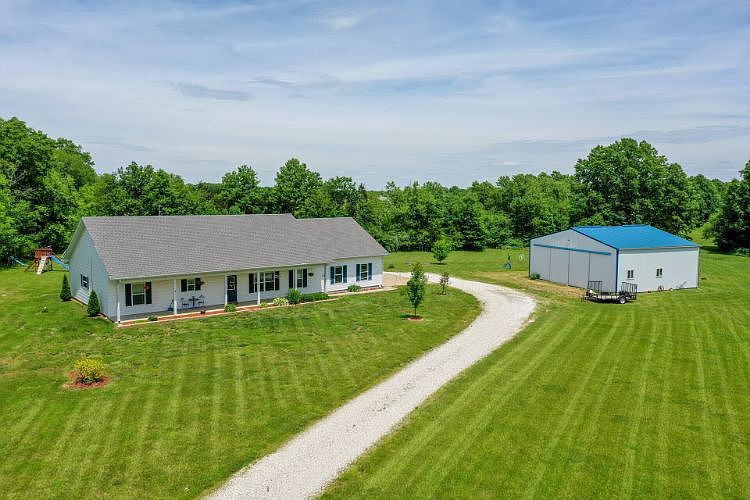 This tree lined property on 11.23 acres in Hallsville Schools sits right off blacktop! Built in 2013 with over 1750 square feet, this home features an open floor plan, 3 bedrooms, 2 bathrooms, formal dining and a 3-car garage. The master suite has a walk-in closet and a jetted tub in the master bath. Other features include tile backsplash and center island in the kitchen, tiled shower in the hall bath, wood floors, and a wood burning stove in the living room. Covered front porch and back deck overlook a well-maintained yard with a firepit, plenty of flat ground and lots of trees for shade. The 48'x36' shop has 2 horse stalls, electric, and sliding doors on both ends.
