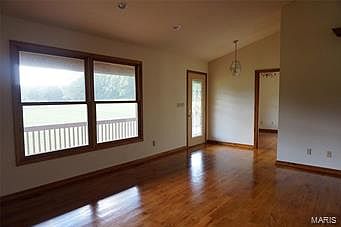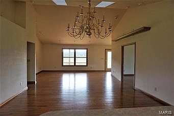 Large ranch home with a lovely wrap-around covered porch nestled behind trees on approximately 4 acres. Very private setting with open area surrounded mostly by trees. There is an over-sized 3 car detached garage. Inside you will be delighted to see the large open rooms with real hardwood flooring, and vaulted ceilings in the great room and family room. All 3 bedrooms have their own private bathrooms, plus the 1/2 bath on the hallway. There is an office right off the front door as well. Flooring is hardwood everywhere except for tile in the kitchen, utility, and all baths. You will love the setting and the home, but may want to make a few changes to reflect your decorating taste.