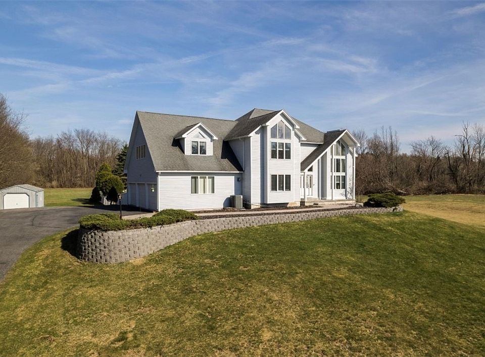 Elegance, style and sophistication embody this lovely contemporary built in 1995. So spacious and inviting you will be wowed!! Grand large livingroom with floor to ceiling windows and beautiful new laminate hardwood flooring are just one of the many highlights the 1st floor has to offer. Cozy gas fireplaces in both living and formal dining. Kitchen is perfectly laid out for the chef of the house with center island and plenty of room for large gatherings. 1/2 bath is a must for guests. Easy access to your composite deck for summer bbqs or summer reading. (Space for hot tub) Enclosed 3 season sun porch is amazing and perfect for bird watching and morning coffee. In ground pool has new liner and beautifully landscaped with mature cedar trees and stone. 2nd floor provdes 3 bedrooms and full bath in hallway. Primary bedroom also has a beautiful bath, complete with new walk in shower 2022, whirpool tub, double closets, battery operated blinds and soft carpet. Full walk out basement with sliding doors, large rec room, another full bath and two bedrooms. Storage is incredible!! 5 acres of land, shed for all your toys, 3 car garage, close to Rte 81, and the City of Watertown. Call today!!