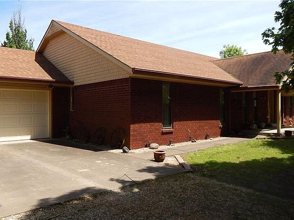 Don't drive on property without appointment! Hill top view of the Ozark Mountains. Gorgeous setting at the end of the road. Older house has been renovated. Has enclosed sunroom not figured into the 1,900+ sq. ft. Three bedroom & Two bath. Two car garage, on a well. Has drive through barn & stall, carport, red barn, shop building concrete floor, 16 ft side walls insulated I-beam loft two 16' overhead doors and one walk through door. Lots of storage. Over 50 acres of very nice pasture and year-round spring.