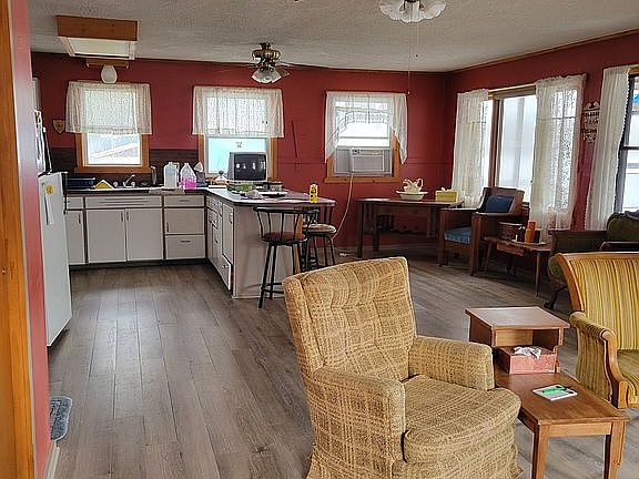 this is a cabin on Husker lake which is a private lake.when you buy the cabin you will be part of association and own stock in same.Cabin has a newer roof,new floor in living and dinning space also comes fully furnished and small storage shed.siding is also new.There is 25 cabins on the lake,close to state parks and Louisville ne.Comes with boat and canoe with electric motor as there are no gas moters alowed on lake