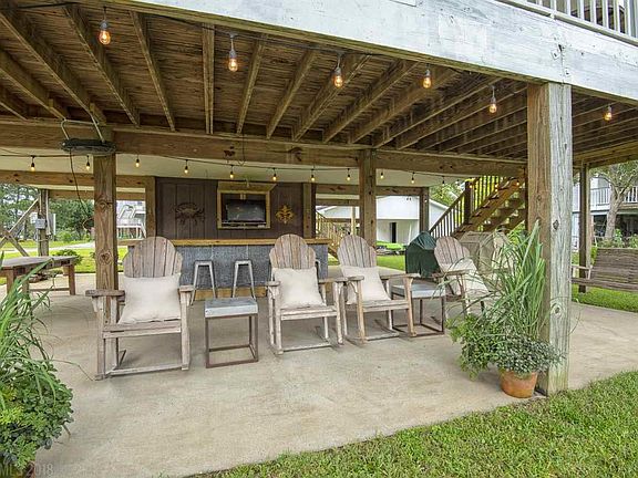 If you're looking for the perfect river front home in Fairhope, you've got to see this place. Resting on an incredible 100' bulkheaded lot on Fish River, this home is "move-in" ready. Imagine morning coffee on the expansive porch overlooking scenic, tranquil Fish River. Weekend crawfish boils with friends at the open bar and entertainment area on the ground level complete with flatscreen TV to watch your favorite teams. Want to take a boat ride? Walk to your personal boathouse and have your boat in the water within a few moments of leaving the couch. This home definitely represents the quintessential river home lifestyle in Fairhope. Complimenting all of the beauty outside, this home has been completely renovated inside as well. As you enter the home you're immediately greeted by the open floor plan with banks of windows inviting natural light in, and offering incredible views out. New gorgeous hardwood floors throughout with slate tile in the bath. The owners have done an amazing job with the kitchen as well. Simple, clean lines define the space with all stainless steal appliances and shelves, incredible white quartz counter tops and custom lower cabinets. This home strikes the perfect balance of having a clean, minimalist design that optimizes the space, while also maintaining a warm and inviting feel. These owners have meticulously renovated and maintained this incredible home. Priced to move. Don't kick yourself tomorrow for missing this deal. If you're looking for a river house in Fairhope, call to see this home today.