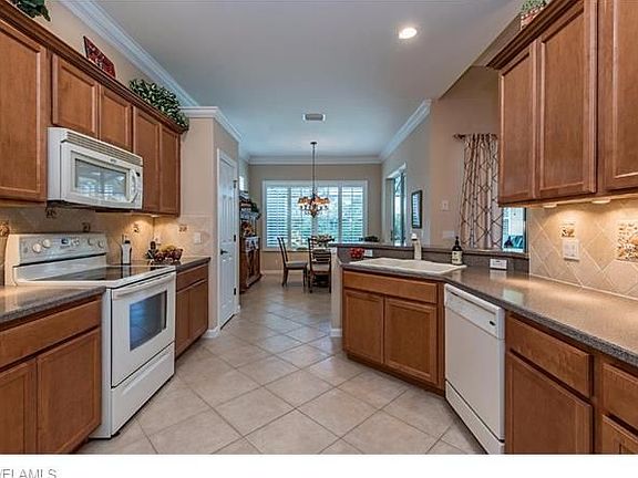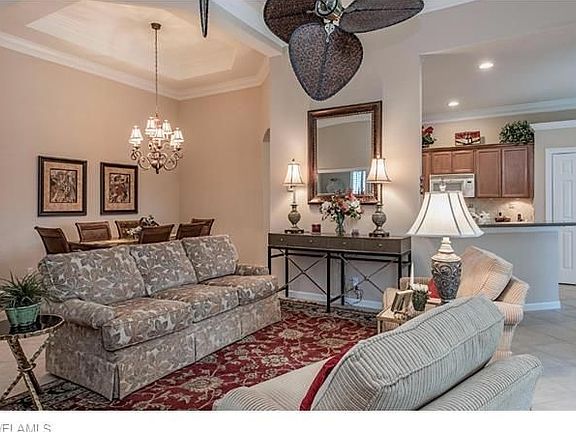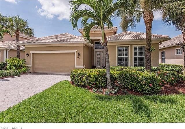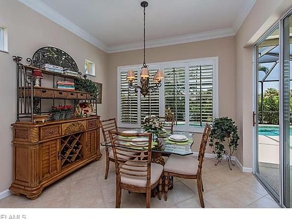 H.9709 - Spacious foyer with 14 foot tray ceiling provides an inviting entrance into this 3 bedroom, 2 bath pool home overlooking the lake. Open floor plan, large living room, dining room and eat-in kitchen with view of the private pool. This meticulously maintained home features tile on the diagonal in the living areas, crown molding, planation shutters throughout, upgraded ceiling fans and light fixtures, tray ceiling in dining room and master bedroom, granite counters in bathrooms, frameless shower door in master bath, separate soaking tub, newly stained pool deck surrounding the heated pool with western exposure for beautiful sunsets year round. Paver driveway, 2 car garage and low homeowner fees make this a must see. Delasol is a low density, gated community consisting of 286 single family homes located on 147 acres of which 62 acres have been set aside for preserves, lakes and green space. Community center with pool, spa, fitness, tennis courts, basketball and children's play lot and sidewalks throughout. Centrally located in north Naples and just a short ride to Naples white sand beaches, excellent shopping, dining and live entertainment at Mercato, North Collier Park.