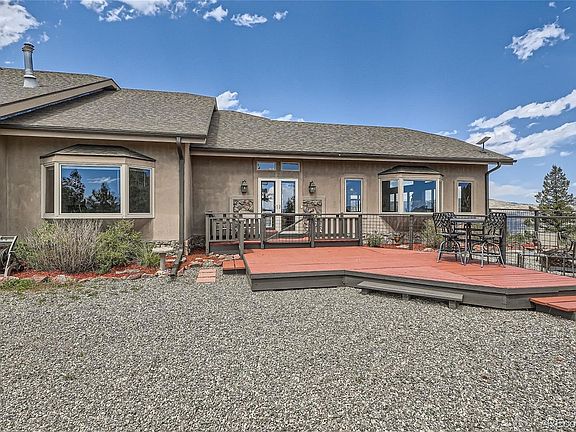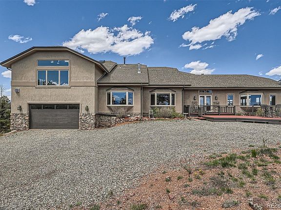 FABULOUS and very private 20 acres on a mountain top. Views that never stop, National Forest, Pikes Peak, Mt. Evans, Cathedral Spire, Thunder Butte, Next to Jefferson County Open Space/Park Land. Wow, 10 minutes from fishing on the North Fork of the South Platte River. Gated drive with 3 miles of private dirt road. Custom built home, outstanding architecture, Vaulted ceilings, large chefs kitchen, WOOD floors, VIEWS and VIEWS. A two CAR and A FOUR CAR, garage, SIX in total. ENTIRE HOUSE SOUND SYSTEM, and just in case a PROPANE BACKUP GENERATOR WHEN NEEDED. Heating cable for roof ice mitigation. SECURITY SYSTEM, water PURIFICATION SYSTEM. 2 LOFT AREAS, one has a slide too, CAN YOU BELIEVE around 3000 sq feet of basement with TRAMPOLINE