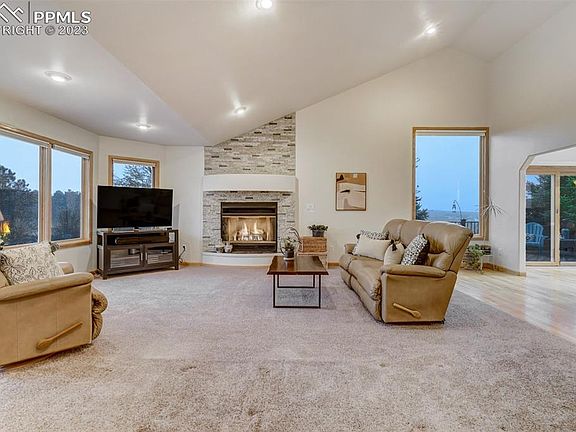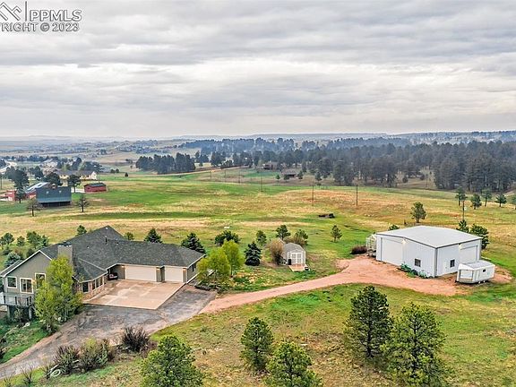 This Black Forest Rancher has it all! Five Acres, Incredibly Engineered Shop, Horses Allowed, and Full Mountain Range View from Pikes Peak to Longs Peak. Located in the desirable D38 schools, offering four bedrooms, three baths, three gathering areas- Living Room, Multi-Purpose Room and Family Room. Over three thousand square feet of thoughtfully designed living space. This tranquil residence boasts a remodeled kitchen with an abundance of granite countertops and cabinets, stainless steel appliances, large pantry, and walkout deck with stunning mountain views. Master retreat is adorned with French door entry, updated master bath with stand alone shower, soaking tub, dual sinks, and walk-in closet. Huge three car garage that accesses the private back patio where the swim spa is located. Spacious shop is a dream with two doors, one 12' and one 14' for ease or RVs, concrete floor and deep pylons- built to last all of Colorado's weather. Chicken coop, shed, and greenhouse complete the property perfectly. Come and see for yourself. You will not be disappointed with everything this gem has to offer!