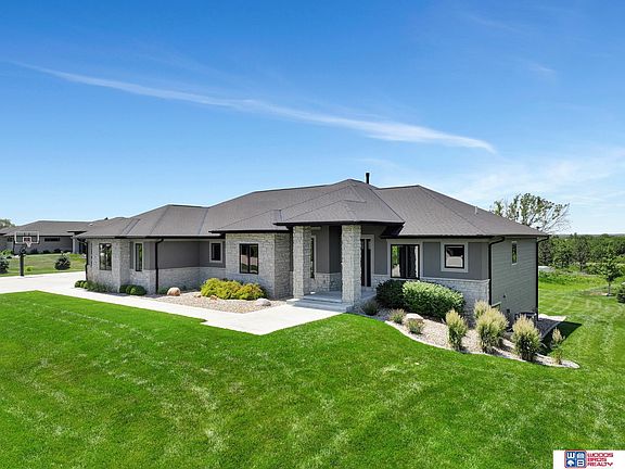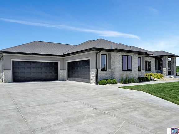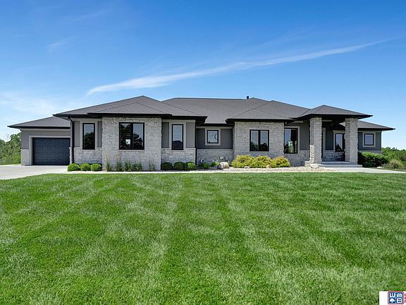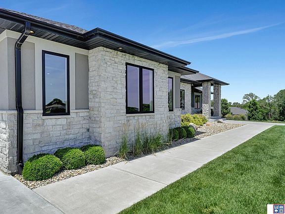 Welcome to this stunning acreage off pavement just minutes from South Lincoln. This custom built walkout ranch features 4 beds/4 baths, incredible curb appeal, sleek exterior, covered front porch, LED sidewalk lighting and beautiful landscaping. Upon entry you'll notice the large windows, stone fireplace and ceiling detail. The kitchen features commercial grade appliances, center island, walk-in pantry and ample counter/cabinet space. The primary suite includes a spacious walk-in closet and fully tiled walk-in shower. A home office with built ins, 2nd bedroom, full bath and laundry/drop zone are also on the main level. Downstairs find heated floors, large family room with theater, additional TV's, speakers and bar area perfect for entertaining. Also find two bedrooms and full bath. Enjoy the large patio area with fire pit, Bullfrog spa and secluded backyard. The 6 plus car garage has heated floors, sink, mounted TV's and workout space(equipment included). 2024-09-26