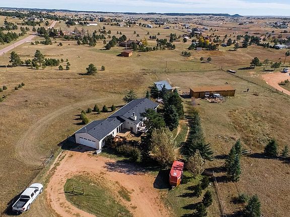 This beautiful Ranch home is located in a rural setting, however it is still close to shopping, dining, schools, and Schriever/Peterson AFB* As you step into this home, you will be greeted with the Kitchen, notice the beautiful wood floors* The eat-in Kitchen features a Dining area, staggered cabinets, backsplash, 30" x 19" x 9.25" deep apron sink, and a peninsula maple butcher block countertop with bar seating* The Living Room has beautiful wood floors, a fireplace to keep you warm in the coming months, and a walk-out* The Master Bedroom has a walkout to a private deck, and adjoining full Bath* In the basement is the spacious Family Room with walk-out, 2 additional Bedrooms, and a full Bath* This 5 acre property is fully fenced with mature trees and meadows* There are two outbuildings/barn/loafing shed with each accommodating 2 stalls* There is also a riding arena on the property* The yard is nicely landscaped with a Koi pond and adjacent deck*