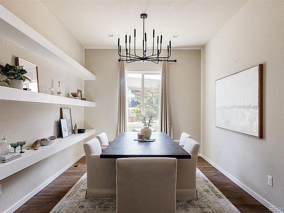 Welcome to your dream home in the highly sought-after Candelas neighborhood of Arvada! This beautifully designed 4-bedroom, 4-bathroom ranch-style residence offers the perfect blend of modern elegance and comfortable living. The expansive open floor plan boasts high ceilings and an abundance of natural light, creating a warm and inviting atmosphere. The gourmet kitchen is a culinary delight, featuring quartz countertops, stainless steel appliances, a large center island, pantry and ample cabinet space. The luxurious primary suite includes a walk-in closet with direct access to laundry room and a spa-like en-suite bathroom with dual vanities, and large walk in shower. Three additional generously sized bedrooms provide plenty of space for family, guests, or a home office. The fully finished basement offers a versatile space for a home theater, game room, or fitness area. Enjoy Colorado’s beautiful weather in your private backyard, complete with a covered patio and low-maintenance landscaping. With the HOA maintaining the front yard mowing, watering and snow removal this is low maintenance living at its best. This home is equipped with modern amenities, including energy-efficient features, central air conditioning, and a spacious two-car garage. Residents enjoy exclusive access to community amenities, including swimming pools, fitness centers, and trails. Conveniently located just a short drive to downtown Arvada, Denver, and Boulder, this home offers endless dining, shopping, and entertainment options. Don’t miss the opportunity to own this stunning ranch-style home in Candelas. Schedule your private showing today and experience the perfect combination of luxury, comfort, and convenience!