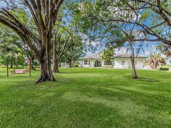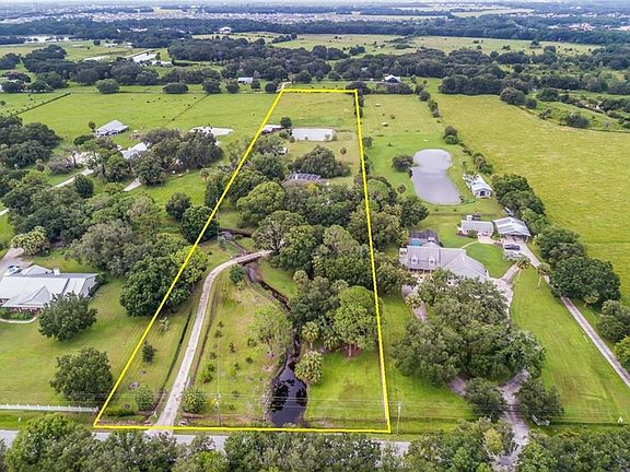 Estate-sized property with a well-built CUSTOM POOL HOME, perfectly situated on over 6 Acres just off State Road 64 near Mill Creek and Greyhawk Landing. Quiet country living awaits on this private one-of-a-kind parcel that features a 2500+ square foot home, an air-conditioned workshop with roll-up door, a stocked pond, stables and cross-fenced pasture. Not visible from the road, as you drive through the front gate, the stately home then comes into view framed and shaded by mature Oaks, palms and abundant Florida foliage. Known as "Hawk Hammock", after the majestic native birds seen darting from tree to tree, and soaring overhead, this gorgeous property features a picturesque flowing creek, a grove of fruit-bearing trees and plenty of room to roam!!! You'll feel right at home when you enter the double front doors into the OPEN CONCEPT FLOORPLAN with stunning view of the huge pool deck, and then further to the shimmering pond beyond. The home's huge GREATROOM has a wood-burning fireplace, formal Dining Room with lovely wood flooring and a bright EAT-IN KITCHEN with breakfast bar, ample cabinetry and large closet pantry. Entering from a side exterior door there's a perfect mudroom and laundry with utility shower and sink, built-in cabinets and direct access to the oversized two-car garage. If you have been searching for a nice home on ACREAGE, near town, then look no further. Completely private, and surrounded by nature, this peaceful property will turn your dream into reality.