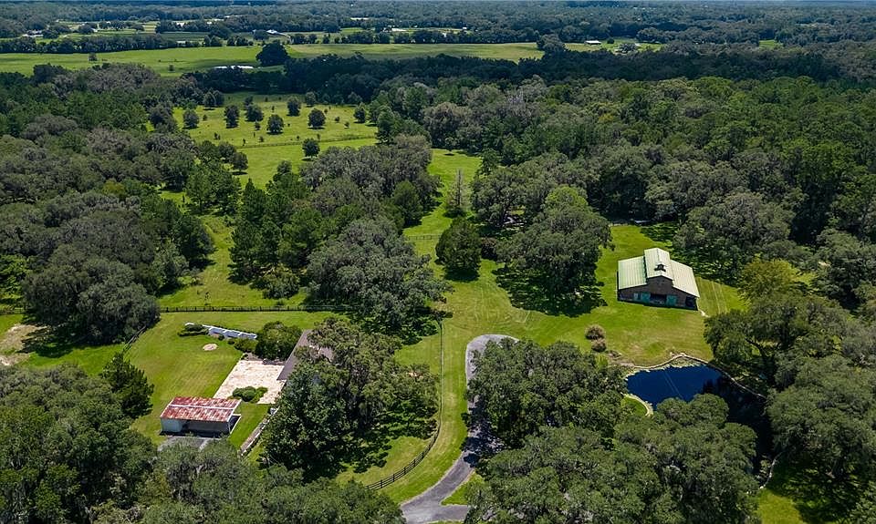 A stunning opportunity to enjoy the best of Florida’s natural beauty for years to come! Comprising 200 acres in NW Marion County’s iconic horse country, this property has a unique quality not often seen on the market– the full property is a Conservation Easement that is considered a Stewardship Forest and certified Tree Farm. In fact, this property is the only Conservation Easement currently offered for sale in the Marion County area. Several species call the property home and flourish amongst the mature trees and park-like setting. Two residences are currently established on property: The main home was renovated in 2000 and features a variety of unique features. The stone accents throughout the exterior and interior portions have been sourced directly from the land, as have the hardwood flooring throughout. Large windows allow for ample natural lighting as well as sweeping views of the surrounding property. No detail has been overlooked in this home, from the top-of-the-line appliances to the open, flowing layout. Uniquely, the home also includes a stunning attached greenhouse that allows for year-round gardening for those with a green thumb. The secondary residence on the property is a lovely 2-storied, 3,800 sq.ft. home with lots of opportunity to update if desired. A large covered front porch with column accents welcomes visitors inside to enjoy the stately appointed interiors. The bottom floor of the home serves as a huge, private in-law suite with full amenities for added convenience to long-term guests. To the back of the home is a large stone patio that overlooks the nearby paddocks and open greenery. A separate carport is located nearby and is equipped with additional storage options. Also established on the property is a stunning center-aisle barn with a total of 5 stalls, feed and tack room, hay storage, and an open upper loft. Four bay doors allow for extensive equipment storage, and fans run throughout to keep the air moving. A picturesque pond is also nearby the barn, with a lovely fountain feature, seating area, and a small dock. Those looking to raise more than horses will love the additional chicken coop with fencing and wire enclosure for added safety. Several trails run throughout the property, offering ample opportunity to explore and enjoy the property’s natural landscape. This stunning farm offers a highly convenient location just 9 minutes from HITS and 25 minutes to WEC, with a variety of equine service providers, retailers, and veterinarian care in the area. Both Gainesville and Ocala’s many shopping, dining, entertainment, and medical opportunities are just a scenic drive away. This farm is a unique opportunity for those who desire a sustainable lifestyle with abundant privacy.